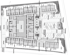 Hovedbebyggelsen består af to boenheder, der hver rummer 10 boliger. Derudover er der 3 selvstændige boliger på den ene fløj i umiddelbar nærhed af hovedbebyggelsen. Alle boligerne er dog beregnet til beboere, der er gangbesværede eller bruger kørestol. Hovedbebyggelsen har egen indgang/vindfang, hvor beboerne blandt andet kan afvente bus til dagtilbud. Beboerne har mulighed for at besøge hinanden, dog skal man uden for hovedbebyggelsen til de 3 selvstændige boliger.
